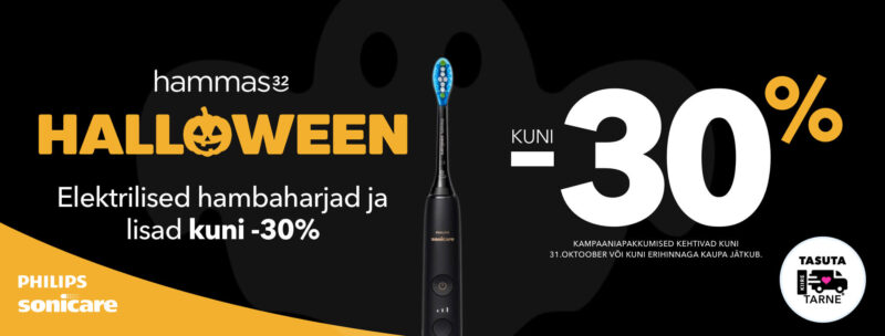 Tähista Halloweeni koos meiega ja saa osa “hirmutavalt” headest pakkumisest elektrilistele hambaharjadele ja lisadele! Kasuta võimalust ja vormista oma tellimus kohe, sest erihinnaga valitud tooted on saadaval piiratud koguses. Tasuta tarneks kasuta tellimisel kupongi PAKIMAAT ja saa saatmise pakiautomaati TASUTA (alates ostusummast 29€, v.a DPD). Tutvu valikuga allpool, leia oma [...]