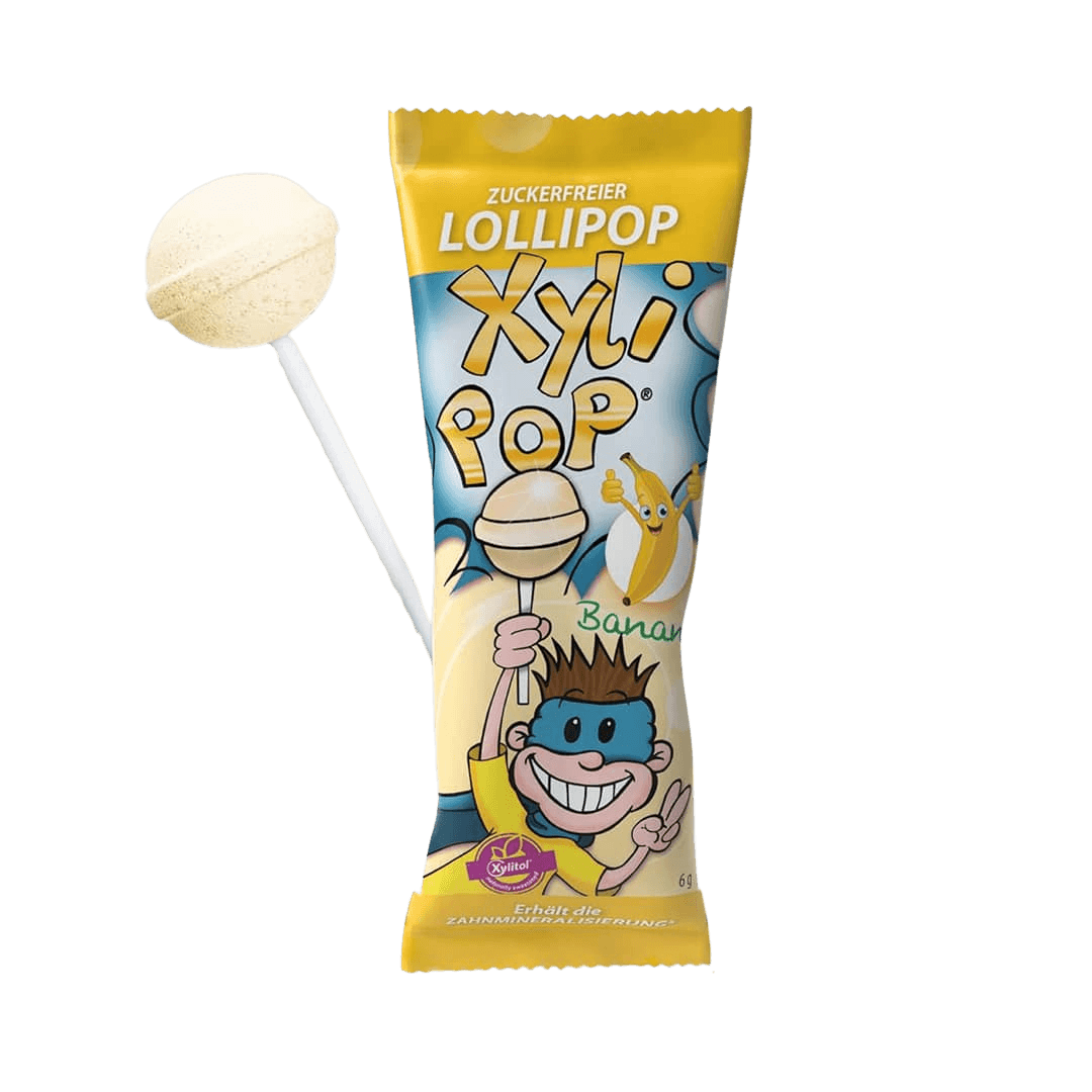 Miradent XyliPOP BANAANI hambasõbralik pulgakomm 6g (suhkruvaba, ksülitooliga)