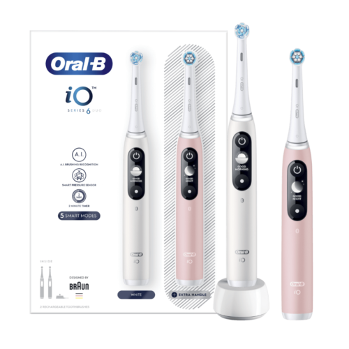 Oral-B iO6 elektriline hambahari White Alabaster / Pink Sand (2 hambaharja, 5 režiimi, ekraan)