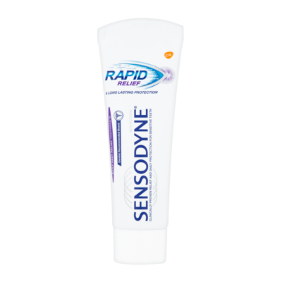 Sensodyne Rapid Relief hambapastal on kliiniliselt tõestatud hammaste tundlikkusest tekkinud valu leevendav toime juba 60 sekundi jooksul. Unikaalne vorm tekitab kiiresti teie hammaste tundlike piirkondade ümber kaitse. See tagab kiire leevenduse ja aitab tagada pideva kaitse iga hambapesu korral. Samuti aitab valgendada ning ära hoida pigmendi kogunemise emailile.