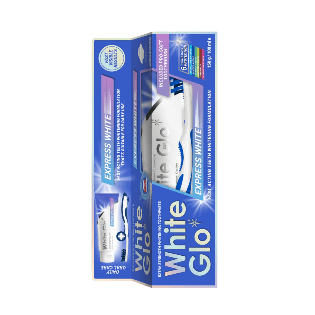 White Glo Express White valgendav hambapasta on kõrge kvaliteediga ja kiiretoimeline hambapasta, mis aitab saavutada nähtavalt valgemad hambad juba lühikese ajaga. Hambapasta on mõeldud igapäevaseks kasutamiseks ning on emailile ohutu, pakkudes samal ajal tõhusat puhastust ja suuõõne kaitset.